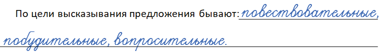 По цели высказывания предложения бывают: повествовательными, вопросительными и побудительными.