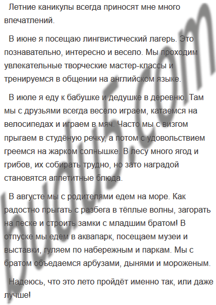 Как вы собираетесь провести свои летние каникулы? Постарайтесь описать свои летние впечатления.