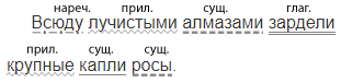 2) Всё зашевелилось, запело, зашумело, заговорило. Всюду лучистыми алмазами зардели крупные капли росы.
