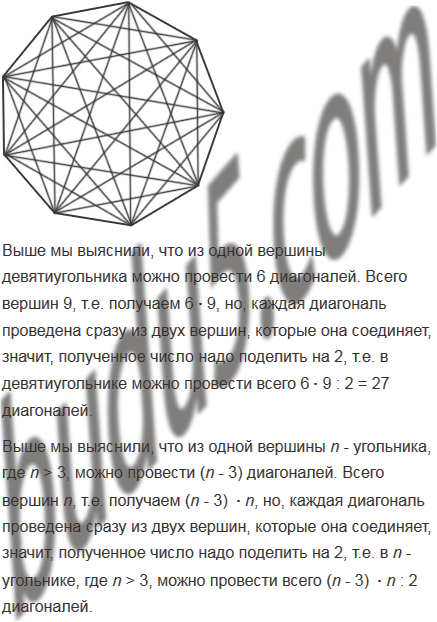 1) Сколько диагоналей можно провести из одной вершины: а) пятиугольника; б) девятиугольника; в) n - угольника, где n > 3?