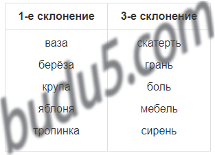 Запишите по пять существительных женского рода 1-го и 3-го склонения.