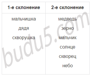 Ко второму - существительные мужского рода с нулевым окончанияем - и среднего рода с окончаниями -о, -е.