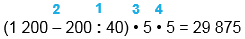 1) 40 • 5 = 200 2) 200 : 200 = 1 3) 1 • 5 = 5 4) 1 200 - 5 = 1 195