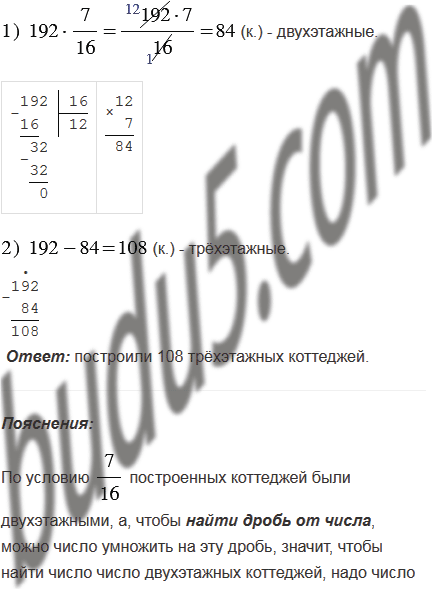 Построили 192 коттеджа, из них - двухэтажные, а остальные - трёхэтажные. Сколько построили трёхэтажных коттеджей?