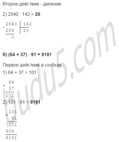 б) (64 + 37) · 91;
