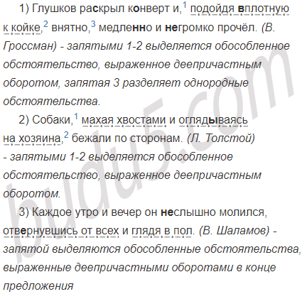 1) Глушков ра(з, с)крыл к..нверт и подойдя (в)плотную к койке внятно медле(н, нн)о и (не)громко прочёл. (В. Гроссман) 2) Собаки махая хвостами и огляд..ваясь на хозяина бежали по сторонам. (Л. Толстой) 3) Каждое утро и вечер он (не)слышно молился отв..рнувшись от всех и глядя в пол. (В. Шаламов) 4) Она (не)сразу узнала Медею а узнав ра(з, с)кинула руки и побежала (на)встречу с радос(?)ным криком. (Л. Улицкая) 5) Егор Иванович (не)слушал а повернувшись к окну ра(з, с)гляд..вал мес(?)ность. (Г. Андреев) 6) Татьяна мыла пол и по(?)скользнувшись и охнув вдруг ок..залась на полу. (С. Осипов)