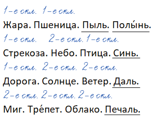 Стрекозы (1-е скл.). Небо (2-е скл.). Птица (1-е скл.). Синь.