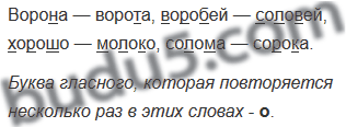 3. Назови букву гласного, которая повторяется несколько раз в этих словах.